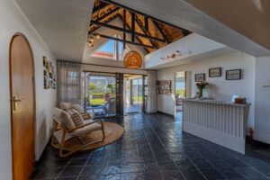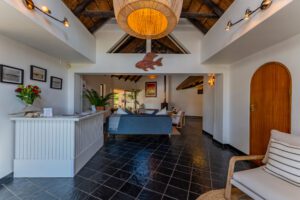 Inside the house, our guests enjoy a tasteful environment that blends modern and beachy with homey and comfortable. Admire the traditional open beam thatched roof that soars above throughout the house. Feel free to relax in the bar (with more ocean views) or by the fire in the main lounge. There are so many places around the house and grounds to find a quiet corner with your loved one, or to meet guests from all over the world. We recommend trying both during your stay!